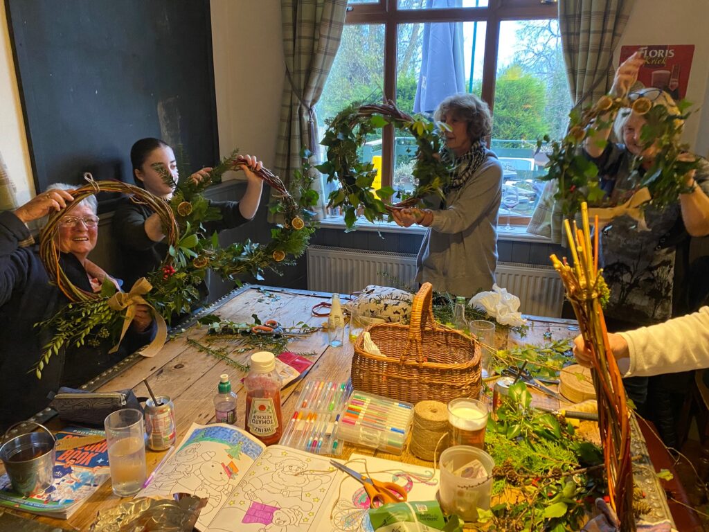 A fantastic group came together to make individual wreaths using entirely natural materials, including multicoloured willow and dogwood harvested from the community woodland. Each wreath reflected the creativity and care of its maker.