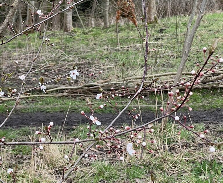 This week has seen the blackthorn blossoming! It’s a lovely sign of spring. The blackthorn has flowers before leaves, unlike the hawthorn which has leaves, then flowers much later – look for it in April nowadays (not in May, its other name).